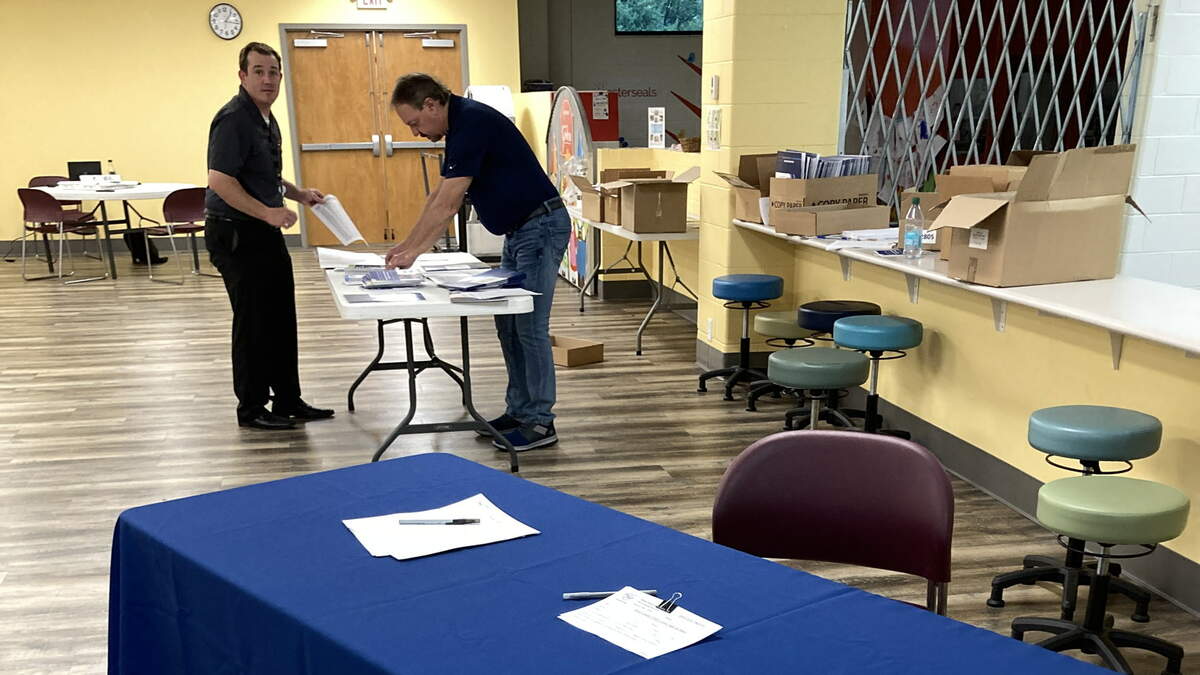 The state contingent of the "Scioto Valley Forward" crew was setting up in the Main Library Annex.