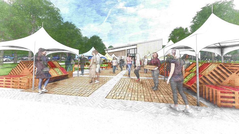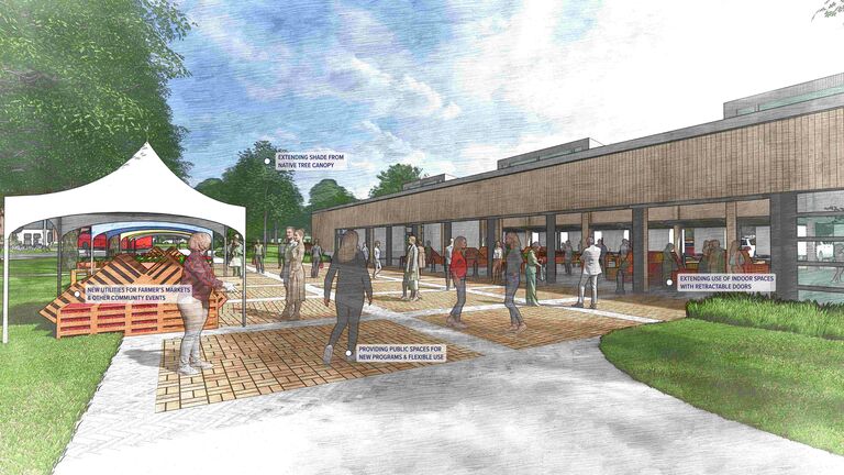A rendering of the west side of the pavilion building for the Chillicothe Farmers Market and other events.
