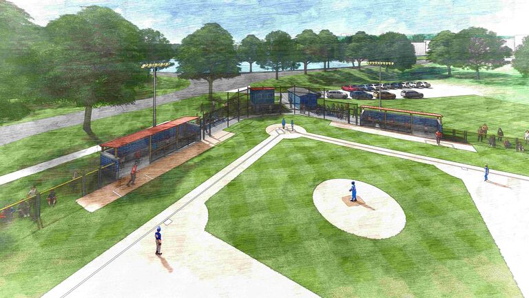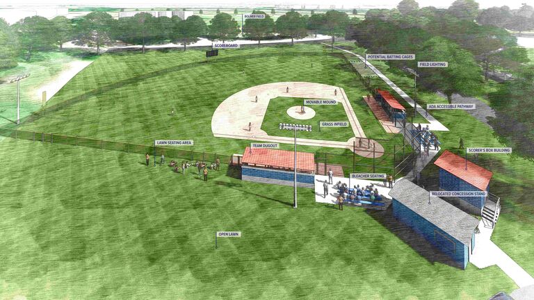 A rendering of relocated Baseball Diamond No. 1, looking northeast.