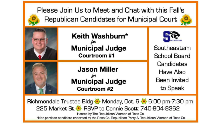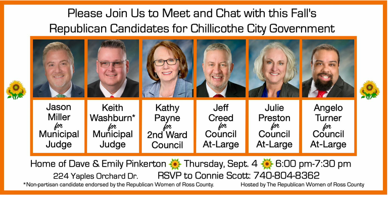 The Ross County Republicans have been hosting meet-and-greets (like their Democratic Party opponents) to introduce candidates to constituents for the fall election. A large gathering was in the Second Ward of Chillicothe, with six candidates appearing.