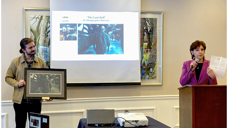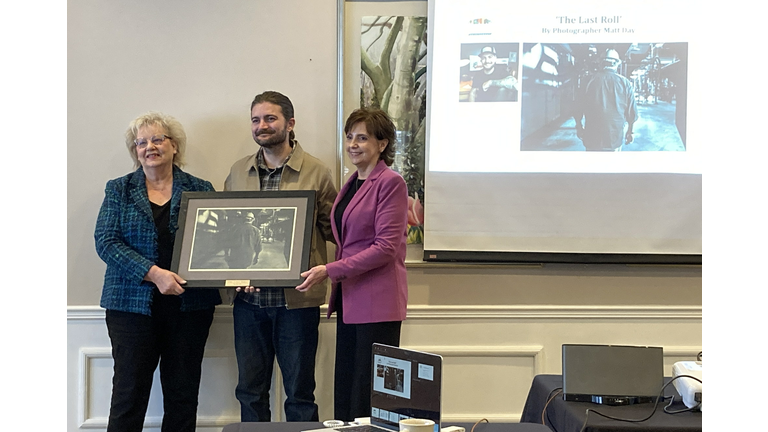 Day and GCRCD director Tammy Eallonardo talk about the print of Day’s photo.