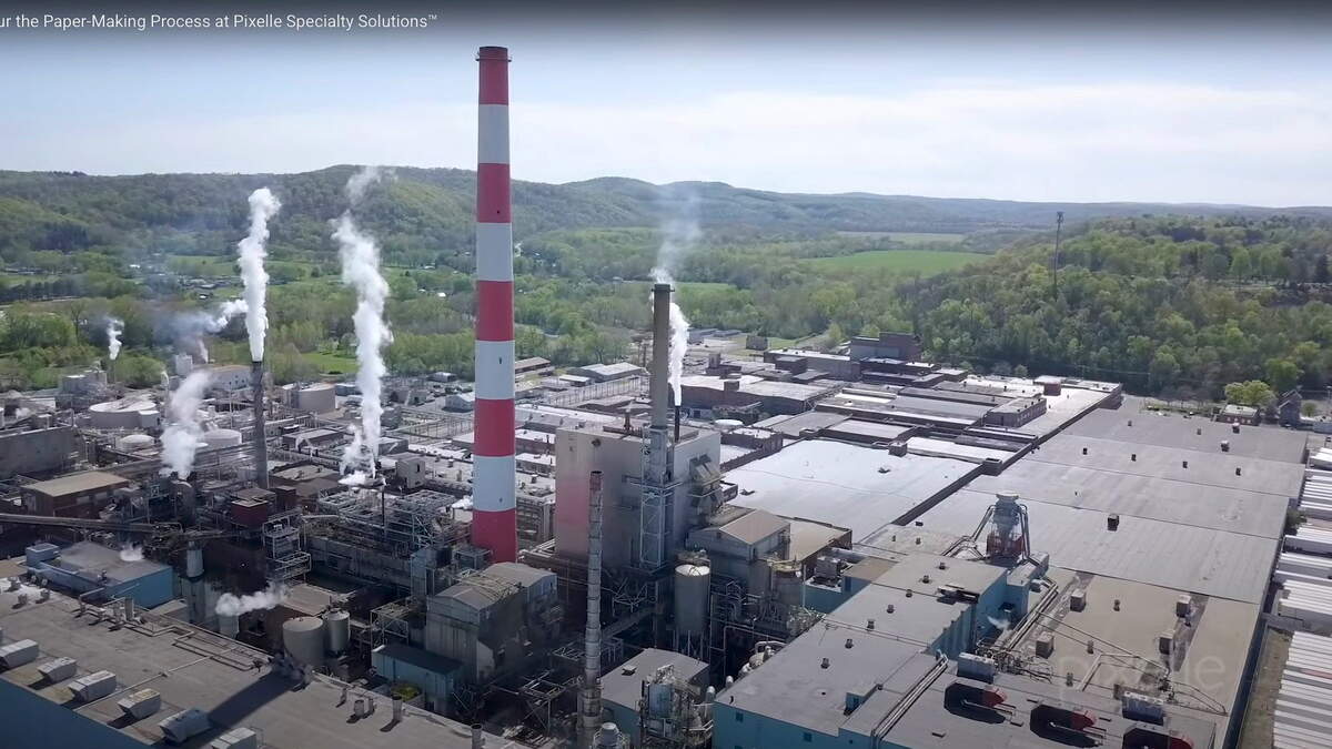 This aerial view of the paper mill is from a 2020 video tour on YouTube by Pixelle.