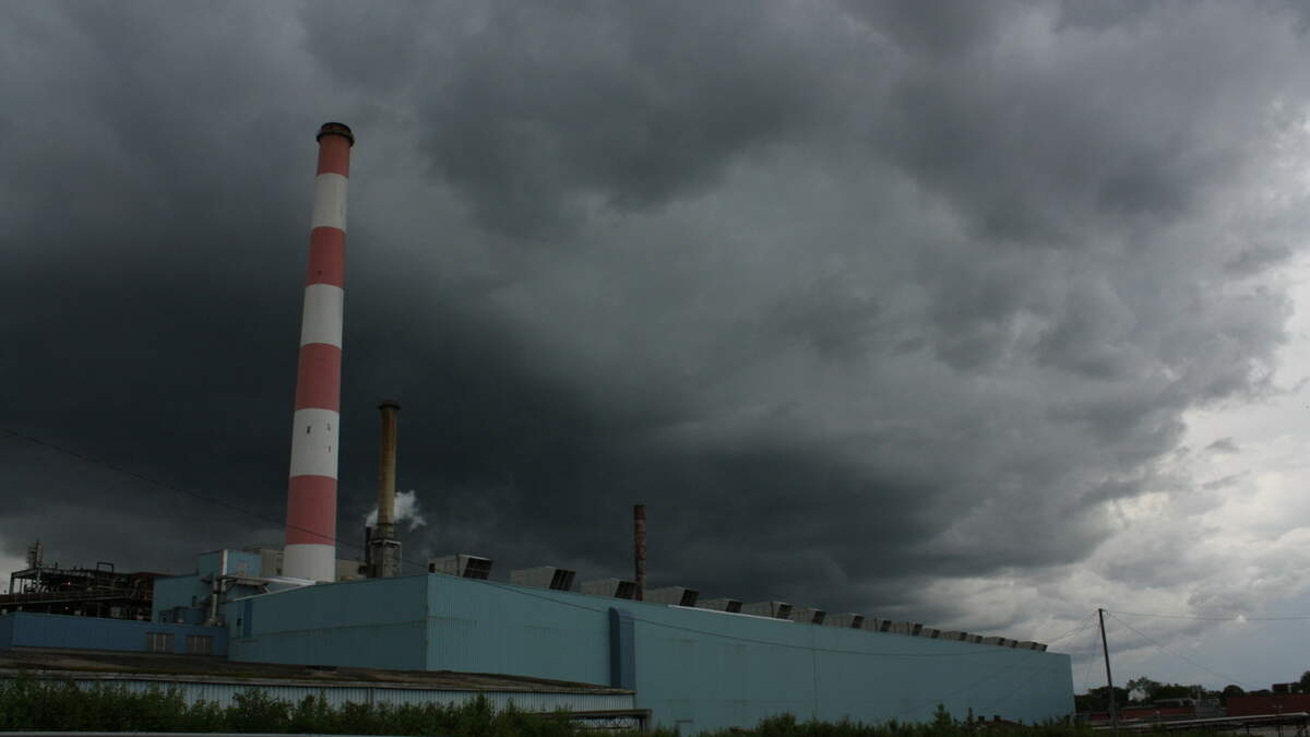 Unsettled skies over Chillicothe's paper mill on May 14th, 2025.